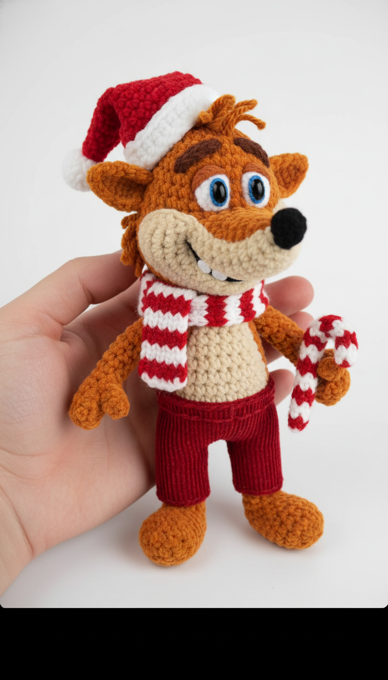 Get ready to spin into the festive season with this adorable Christmas Crash Bandicoot Amigurumi! Perfect for fans of the iconic video game character, this pattern allows you to create your very own holiday-themed buddy, complete with a Santa hat, striped scarf, and a candy cane. Whether for gifting or decorating, this spunky marsupial is sure to bring a dose of Wumpa Island cheer to your home!