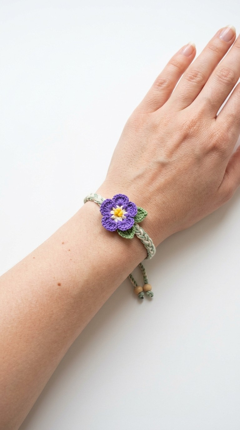 Add a touch of handmade charm to your style with this adorable crochet flower bracelet! This beginner-friendly pattern guides you through creating a delicate pansy bloom and a comfortable, adjustable cord. Perfect for gifting or a personal treat, this bracelet brings a lovely floral accent to any outfit, making it ideal for spring and summer.