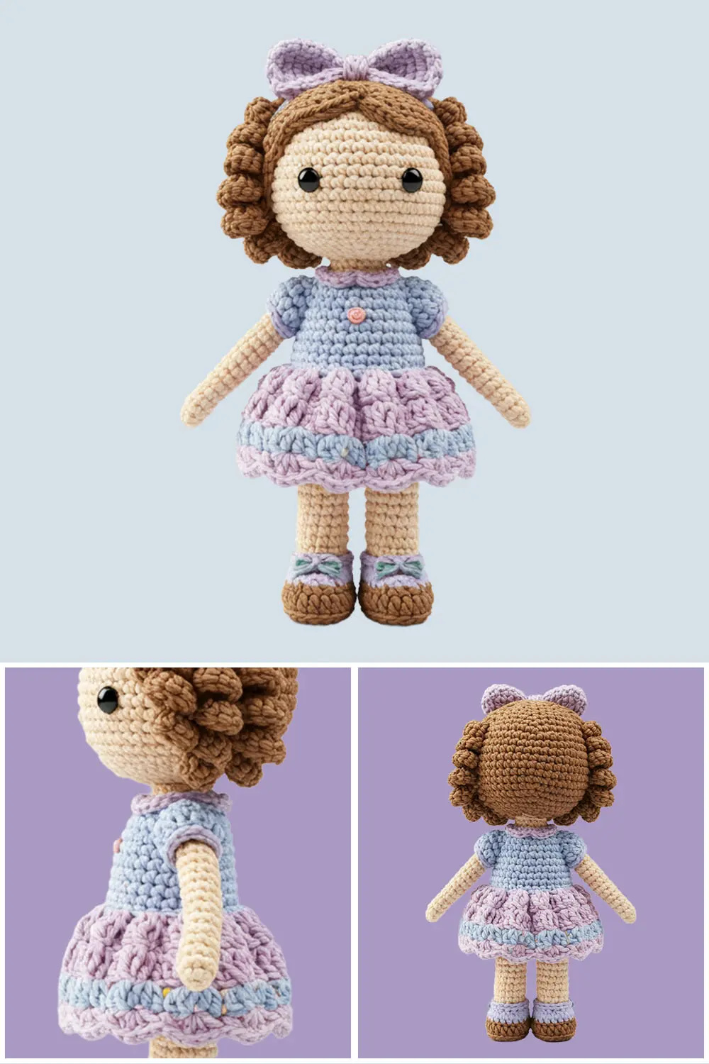 The Doll Girl Crochet Amigurumi is a sweet, gentle character that adds a whimsical touch to any amigurumi collection or festive display.