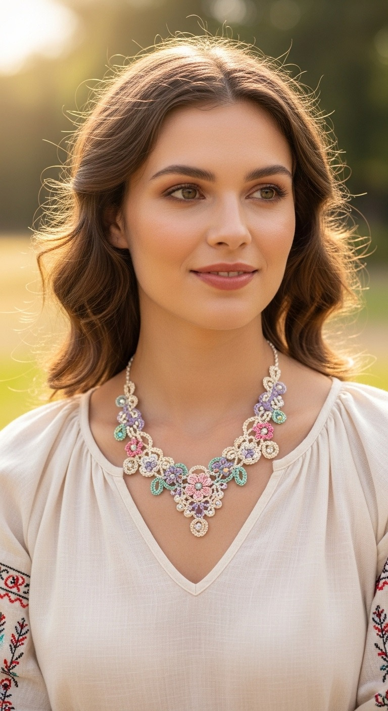 Adorn yourself with the timeless elegance of a handmade accessory! This exquisite crochet floral necklace pattern allows you to craft a delicate statement piece featuring an array of pastel blossoms and intricate lace. Perfect for adding a touch of romance to any outfit, this project is a delightful way to express your creativity through wearable art. Immerse yourself in the joy of creating something truly unique.