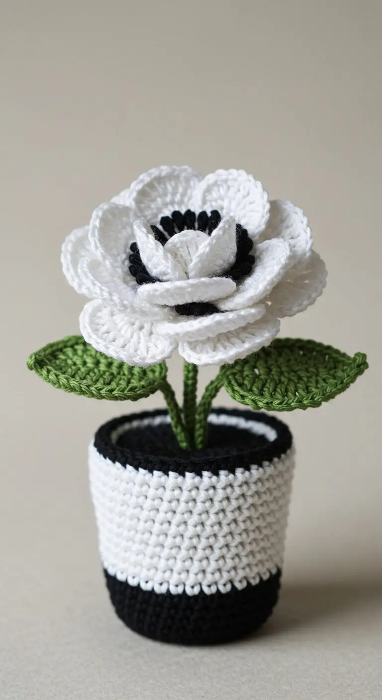 Crochet flowers have long been a symbol of patience, artistry, and timeless beauty. Among the most captivating are the anemone crochet flowers, especially when designed in minimalist tones like white and black. These handmade floral creations offer a unique blend of sophistication and charm, making them perfect as decorative pieces for any modern home. Set in matching crochet pots with a white body and black base, each flower brings a gentle balance of texture and contrast.