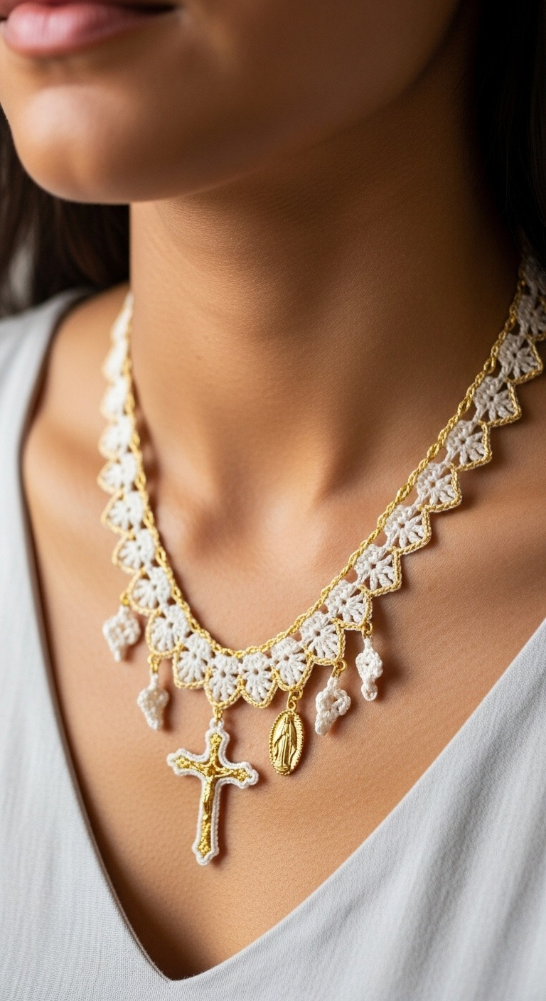 Embrace your faith and creativity with this exquisite crochet rosary necklace pattern. This delicate piece combines intricate lace with meaningful charms, offering a unique way to express devotion. Perfect for gifting or personal wear, this necklace is a beautiful testament to handmade artistry.