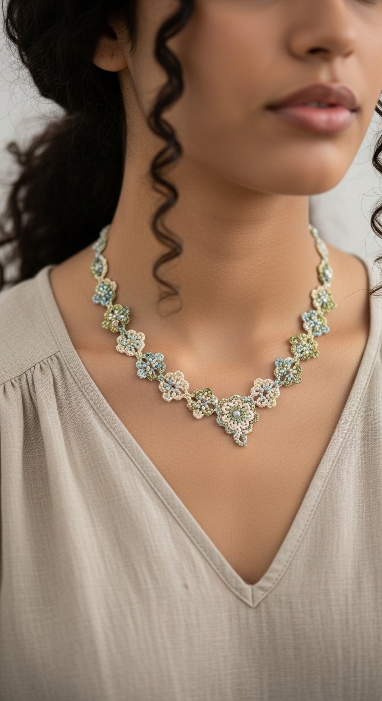 There’s immense satisfaction in creating something beautiful with your own hands. This crochet necklace allows you to personalize your style or craft a thoughtful gift for a loved one. The combination of fine thread and delicate beads results in a unique, heirloom-quality piece that transcends trends, offering a touch of bespoke artistry to any jewelry collection.