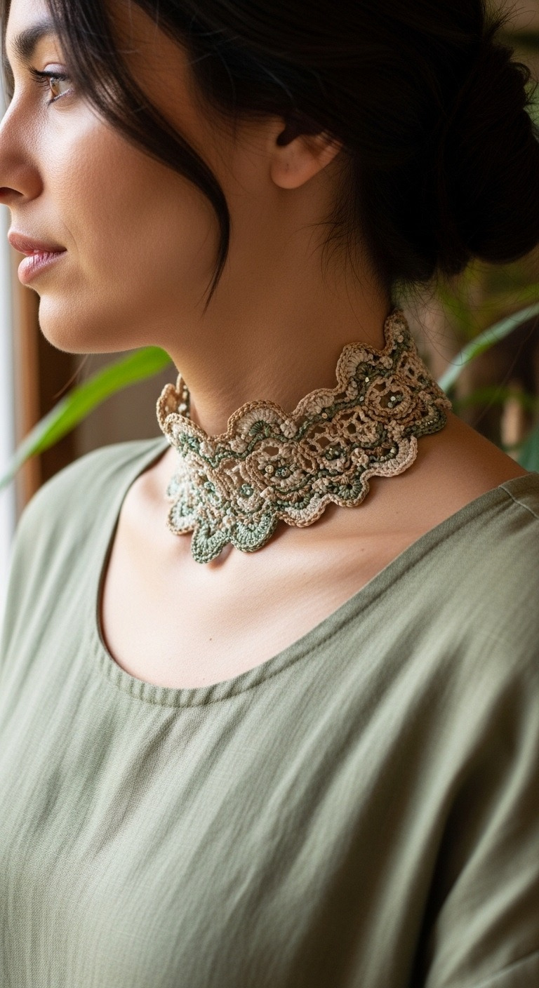 Discover how to craft your own exquisite lace choker with this detailed crochet pattern. Inspired by vintage elegance and natural tones, this piece combines delicate stitches and subtle embellishments to create a stunning accessory. Perfect for adding a touch of sophisticated charm to any outfit, this DIY project lets you wear your creativity with pride.