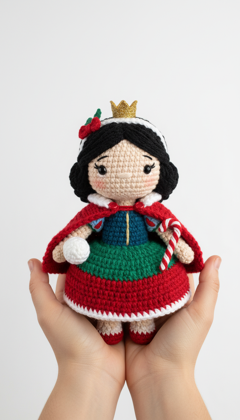 Step into a winter wonderland with our enchanting Christmas Princess Amigurumi Doll! This festive pattern brings a beloved fairytale character to life with a holiday twist, featuring vibrant colors, a regal crown, and delightful accessories like a candy cane and snowball. Perfect for decorating your home during the holidays or gifting to a loved one, this doll will surely spread cheer.