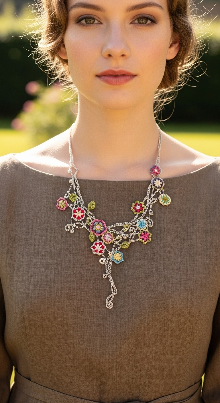 There’s something truly special about wearing a piece crafted by your own hands. This crochet floral necklace allows you to express your creativity while creating a beautiful, personalized accessory. It’s not just a necklace; it’s a conversation starter, a testament to your skill, and a unique gift idea for loved ones who appreciate artisanal treasures and botanical beauty.