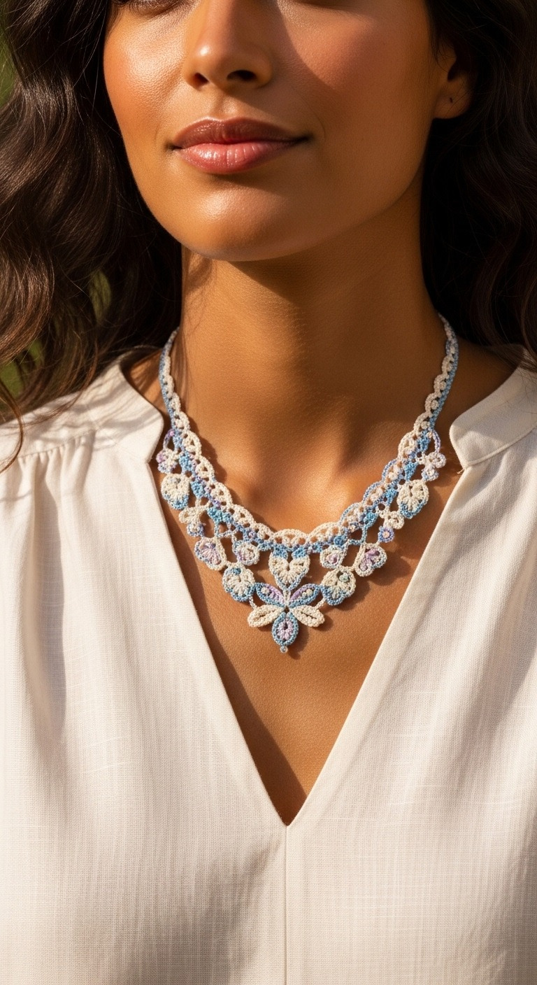 Adorn your neckline with a touch of handmade elegance! This exquisite floral lace crochet necklace pattern brings a delicate blend of cream, light blue, and lavender to life. Perfect for adding a sophisticated, bohemian flair to any outfit, this piece is surprisingly achievable for intermediate crocheters. Get ready to craft a wearable work of art that will surely draw compliments!