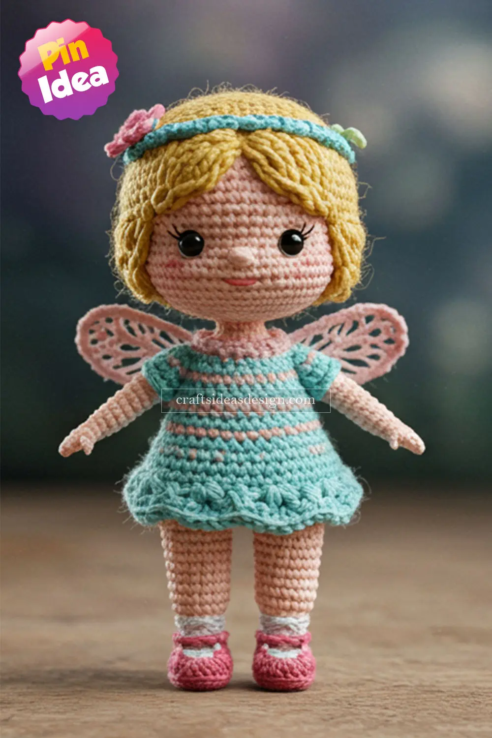 The Fairy Doll Crochet Amigurumi is a charming handmade toy that captures the magic of a woodland sprite. With its soft teal dress, delicate wings, and a flower crown adorning its golden hair, this fairy brings a touch of enchantment to any collection. Perfect for children or collectors, it’s crafted with care using high-quality yarn to ensure durability and a cuddly feel.