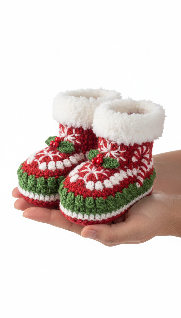 There’s nothing quite like a handmade gift to show your love, and these festive booties are sure to melt hearts. Imagine your baby’s feet snuggled in these warm, stylish, and utterly cute little shoes, ready for all the holiday cheer. This pattern is designed to be enjoyable for crocheters with basic skills, resulting in a cherished item that celebrates the magic of the season.