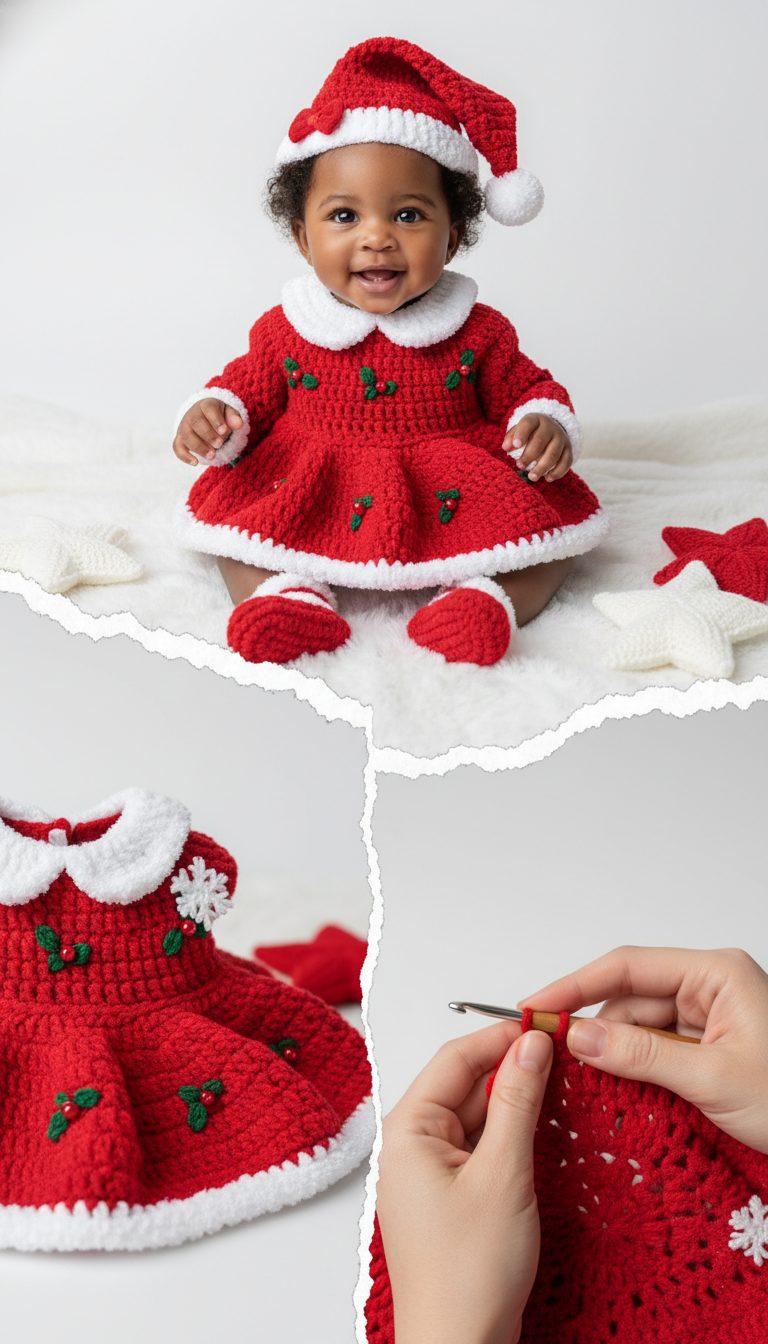 Crochet Pattern: Festive Crochet Baby Christmas Dress & Hat Set Pattern