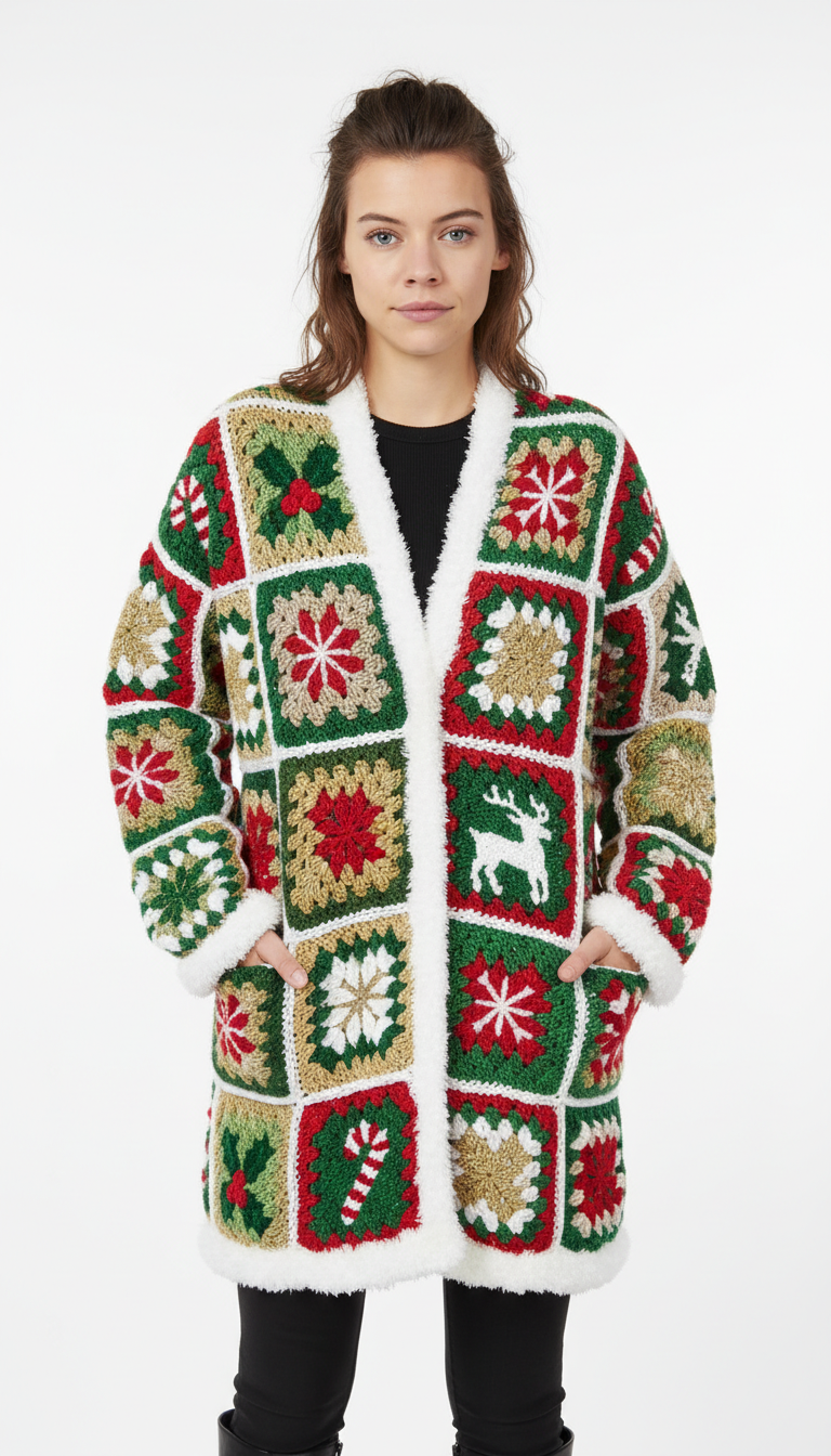 Get ready to spread holiday cheer with this absolutely charming Crochet Christmas Granny Square Cardigan! This pattern guides you through creating a cozy, festive, and utterly unique garment perfect for keeping warm during the chilly season. Featuring classic Christmas motifs like holly, snowflakes, reindeer, and candy canes, this cardigan is a true celebration of handmade holiday spirit. Embrace the joy of crafting and wear your festive creation with pride!