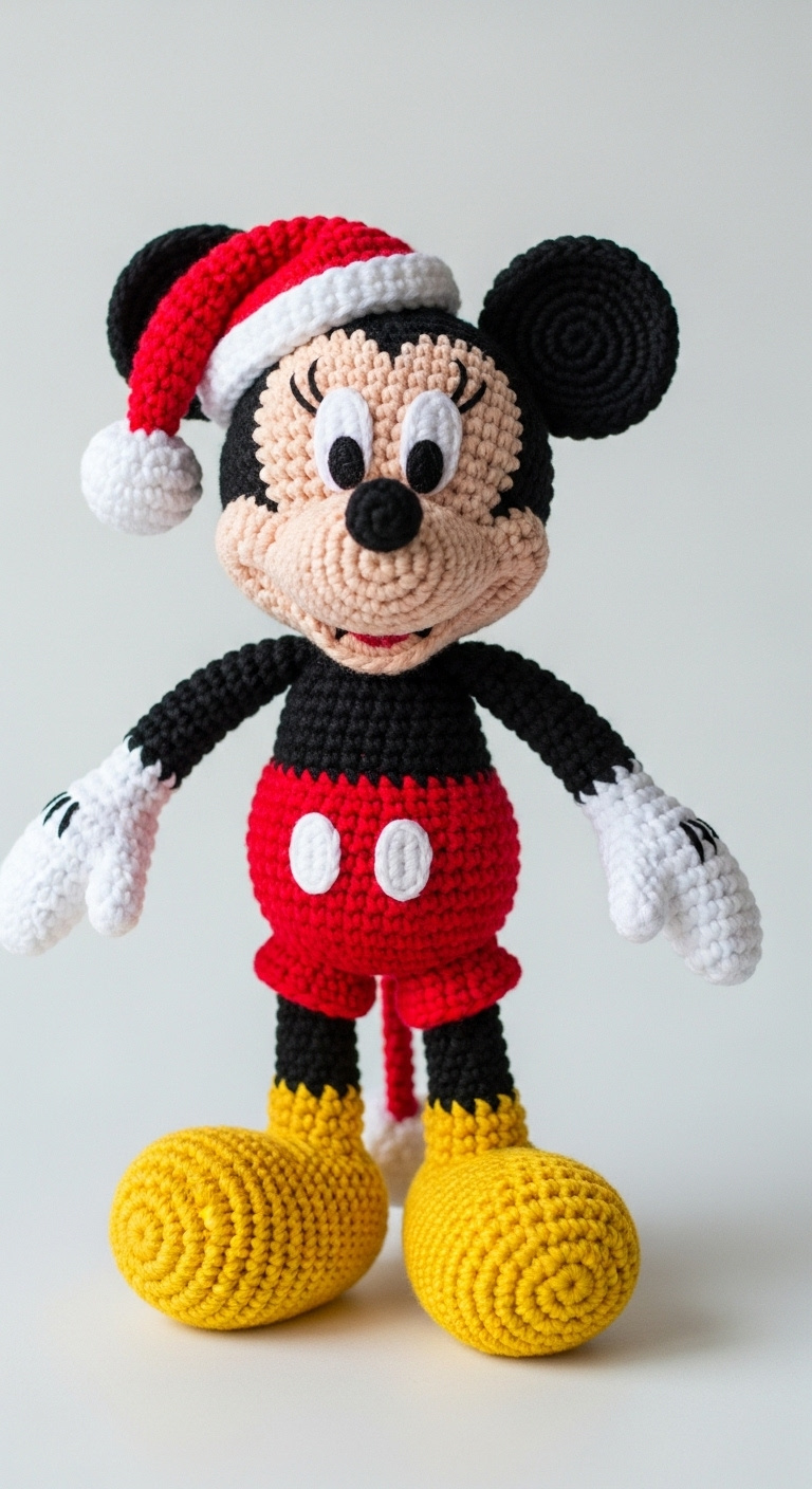 The meticulous artistry evident in this Crochet Mickey Mouse truly makes it a standout piece. From his classic black ears and cheerful expression to the signature red shorts and bright yellow shoes, every detail is lovingly recreated. The addition of the Santa hat gives him a unique holiday twist, making him perfect for Christmas decor. This handmade character not only serves as a decorative item but also as a testament to the timeless appeal of crochet creations. Embrace the warmth and joy this special Mickey Mouse brings to your home.