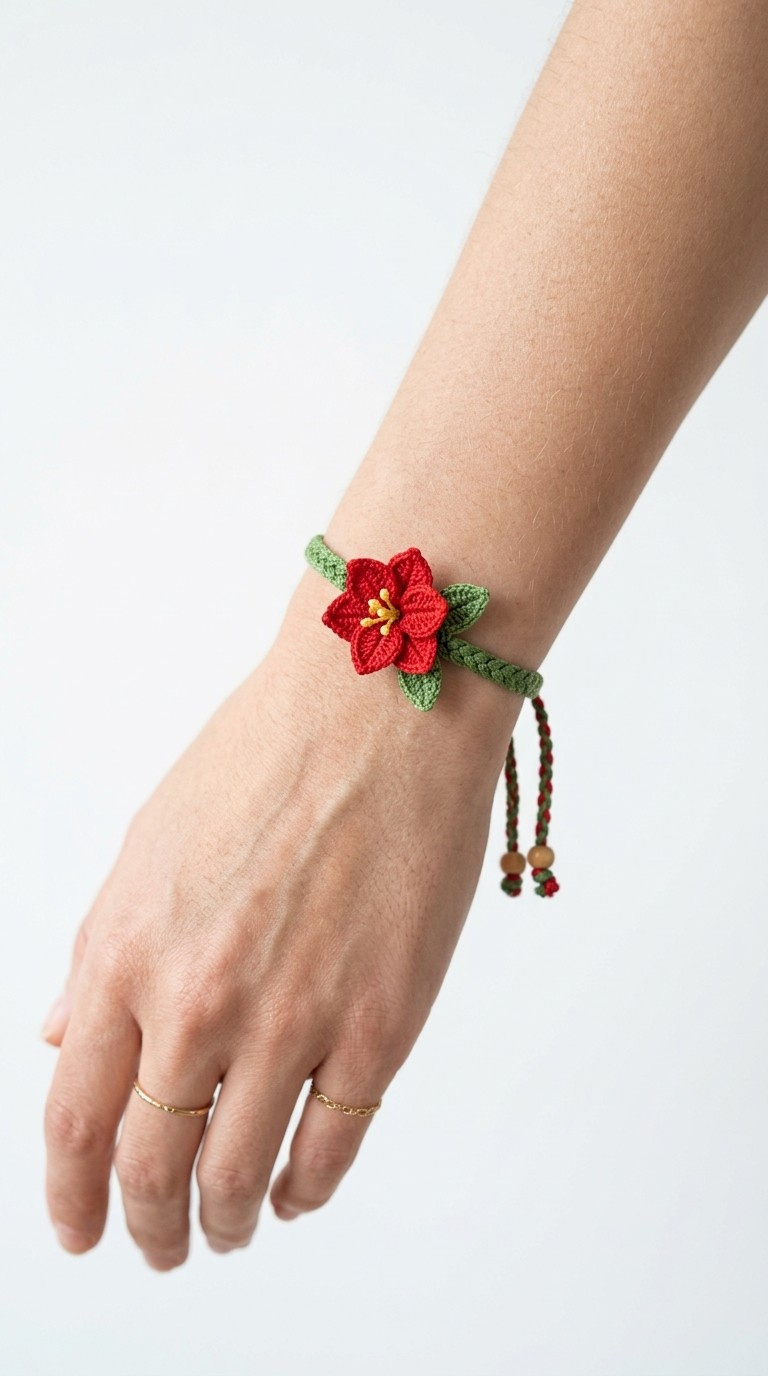 Get into the holiday spirit with our beautiful crochet poinsettia bracelet! This charming accessory adds a touch of festive elegance to any outfit and makes a perfect handmade gift. Easy to customize with your favorite colors, this pattern is suitable for crocheters looking for a quick and delightful project to brighten their winter days.