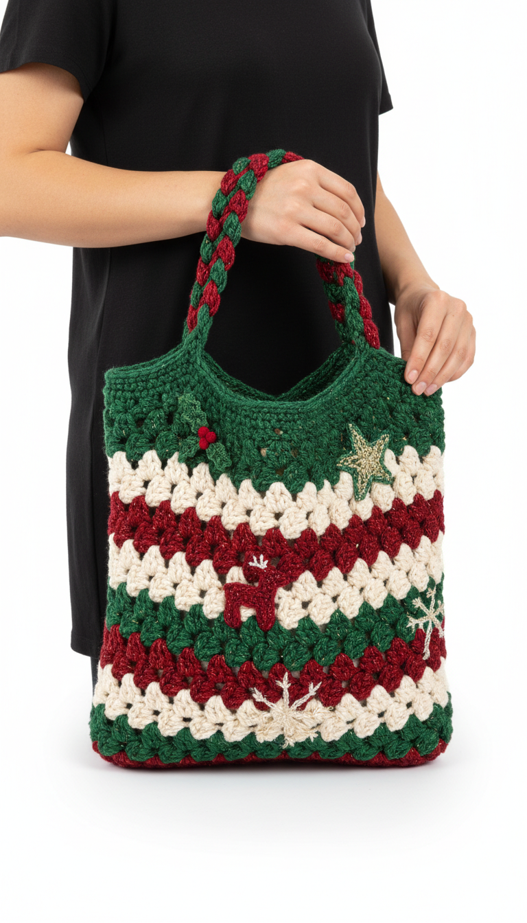 Embrace the festive spirit with our stunning Christmas Crochet Tote Bag pattern! This charming bag features classic holiday colors in a beautiful granny stripe design, adorned with delightful seasonal embellishments. Perfect for carrying your gifts, groceries, or simply adding a touch of cheer to your winter wardrobe. Get ready to crochet your new favorite holiday accessory!