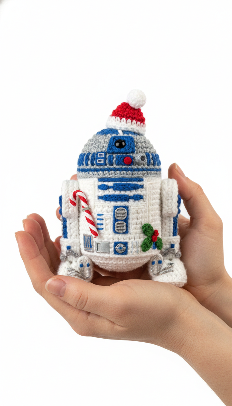 Get ready to bring a touch of the galaxy far, far away to your holiday decorations with this adorable R2-D2 amigurumi! Perfect for Star Wars fans and crochet enthusiasts alike, this festive droid features a charming Santa hat, a sweet candy cane, and a sprig of holly. It’s a fun and unique project that makes a wonderful gift or a standout piece for your Christmas display.