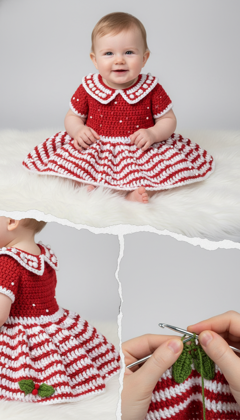 Crochet Pattern: Festive Red & White Crochet Christmas Baby Dress Pattern