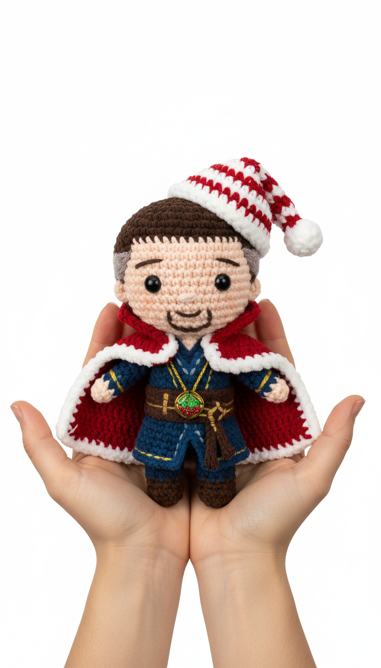 Step into a magical holiday season with our enchanting Doctor Strange Christmas Amigurumi pattern! This adorable crochet doll combines the mystic arts with festive cheer, complete with a tiny Santa hat and his iconic Cloak of Levitation. Perfect for Marvel fans and crafters alike, this pattern will guide you to create a charming, handcrafted gift or a unique decoration for your home.