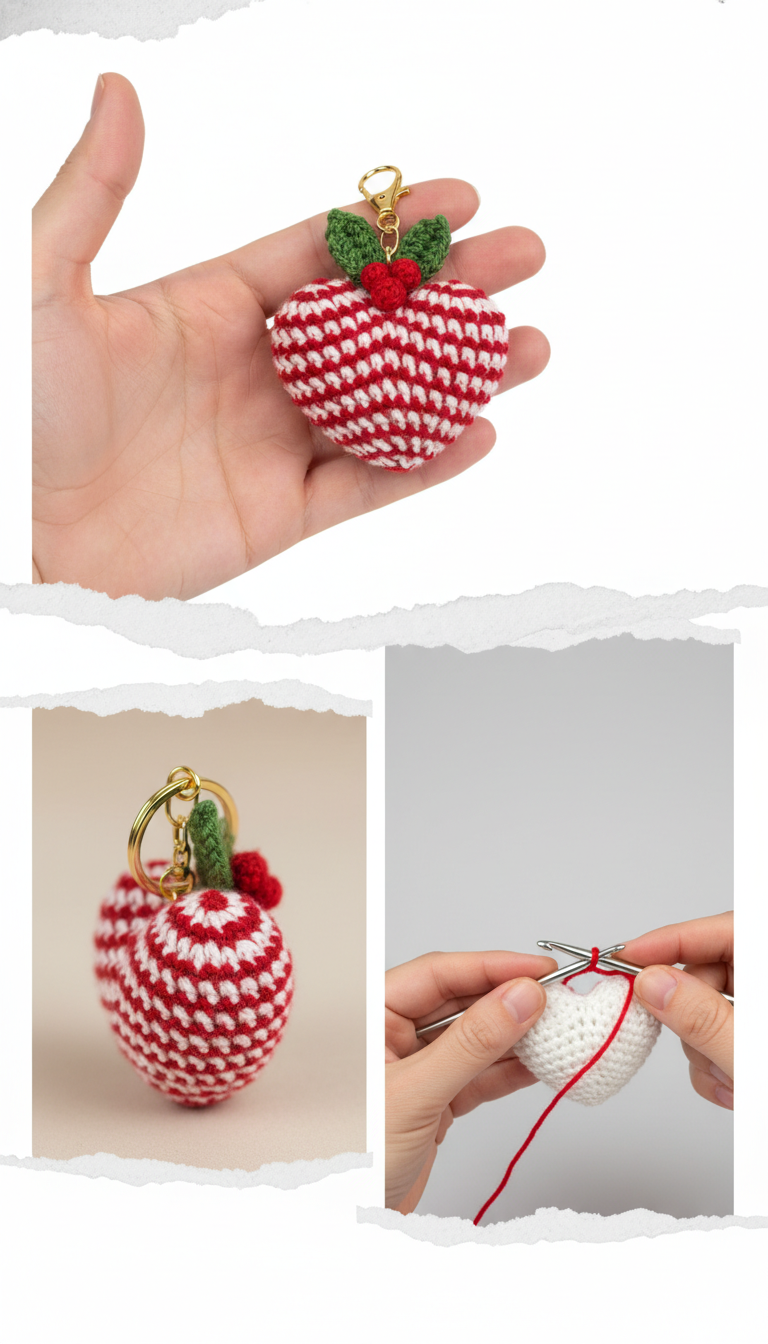 Add a touch of handmade charm to your keys or bag with this adorable Festive Striped Heart Keychain! This amigurumi project is perfect for crocheters of all levels looking for a quick and delightful make. Featuring classic red and white stripes and a sweet holly detail, it’s an ideal gift or a lovely way to celebrate love and joy.