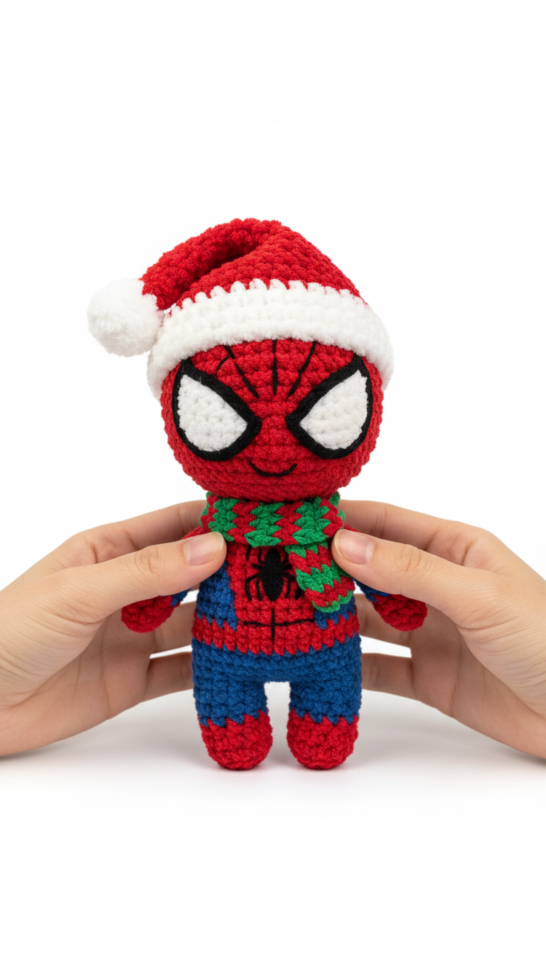 Unleash your inner superhero this holiday season with our adorable Spider-Man Christmas Amigurumi! This free crochet pattern transforms your favorite web-slinger into a festive marvel, complete with a Santa hat and cozy striped scarf. Perfect for gifting to Marvel fans or adding a unique, handmade touch to your Christmas decor, this project brings joy and a heroic spirit. Get ready to crochet your way to a super-festive holiday!