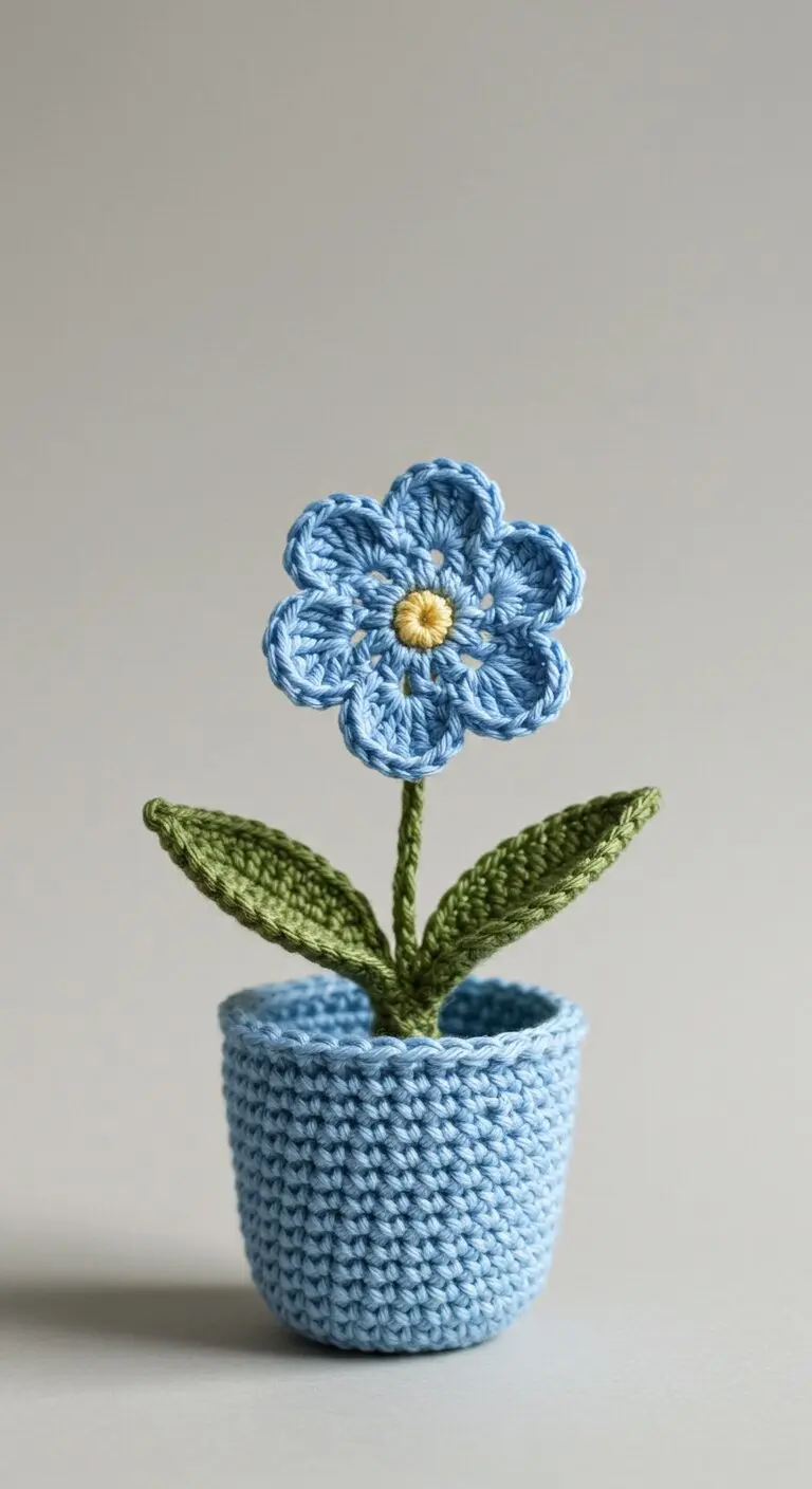 Each forget-me-not crochet flower pot is a lovely keepsake or thoughtful gift. Their handmade charm, gentle colors, and botanical accuracy make them ideal for brightening shelves, desks, or craft collections.