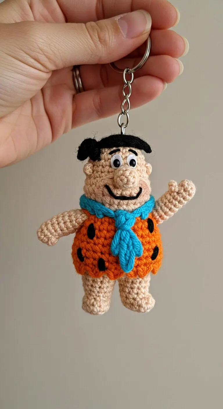 This amigurumi Fred Flintstone keychain is a joyful reminder of classic cartoons and makes a great collectible gift.