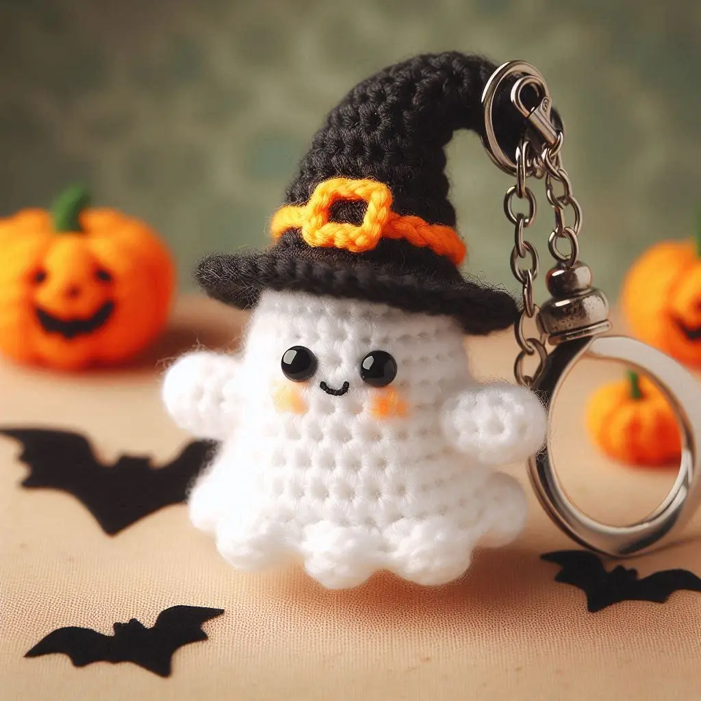 Ghost Halloween Amigurumi is a fun and cute project for the Halloween season. This little ghost with its adorable witch hat will make a charming decoration or keychain, perfect for trick-or-treaters or a Halloween display.