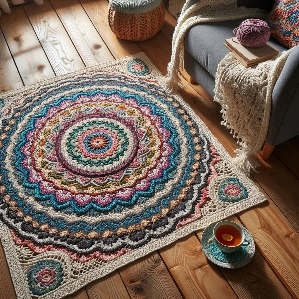 A crochet mandala rug is a stunning and practical addition to any home, combining beauty and functionality. This intricate rug, featuring vibrant colors and detailed mandala patterns, serves as both a decorative piece and a cozy floor covering. Its unique design and craftsmanship make it a perfect centerpiece for any room, adding a touch of handmade elegance to your living space.