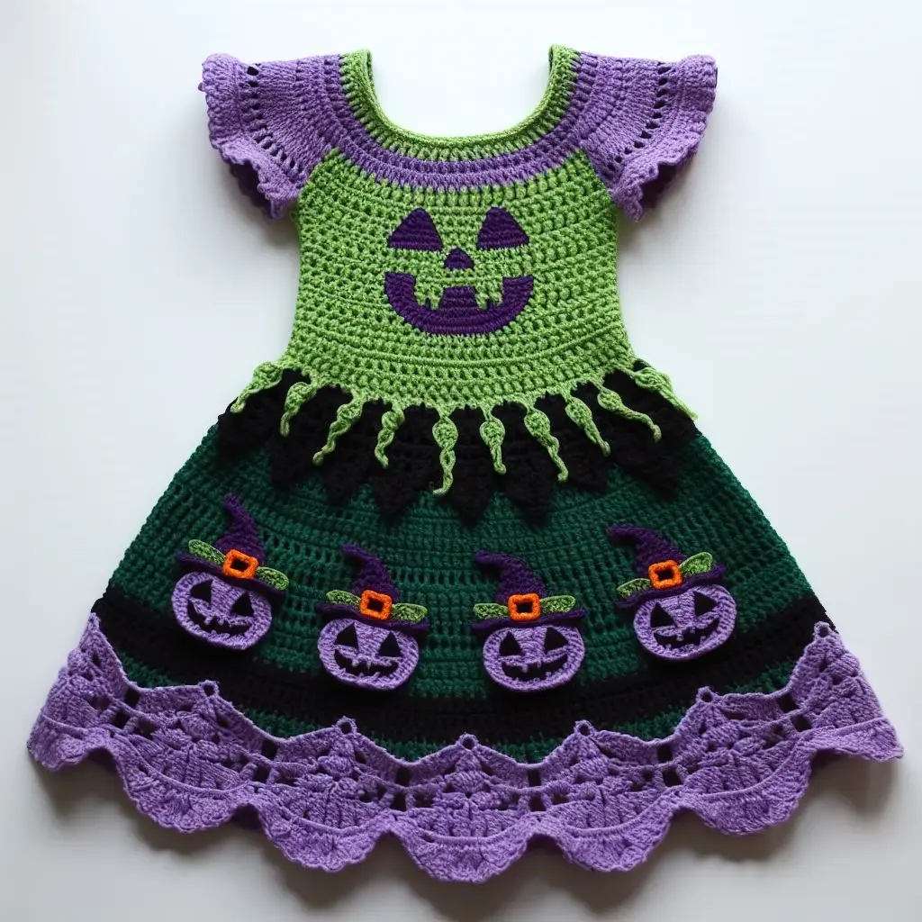 Creating a Halloween crochet dress involves various crochet techniques, including working in rounds, increasing, and adding appliquรฉs. This project is suitable for intermediate crocheters who enjoy making detailed and colorful garments.