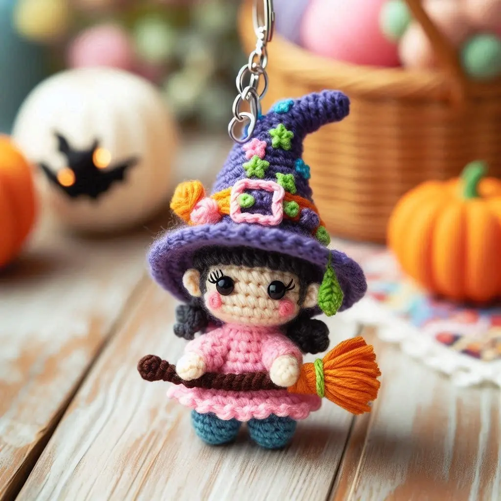 The Halloween witch amigurumi is a delightful project perfect for adding a touch of whimsy to your seasonal decor. This adorable crochet doll features a vibrant witch hat adorned with colorful decorations, a cute dress, and a tiny broomstick. Ideal as a keychain, gift, or festive decoration, this Halloween witch amigurumi brings a charming handmade element to your Halloween celebrations.