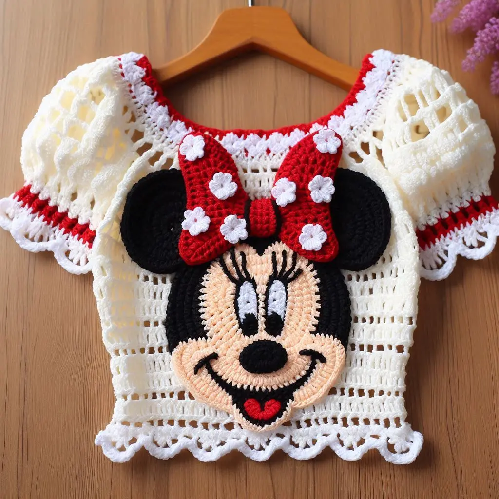 This Minnie Mouse crochet sweater is not only a fun and fashionable item but also a durable and cozy garment. It is perfect for children who adore Disney characters, providing them with a unique and handmade piece that stands out from store-bought options. Whether worn as a casual top or for a special occasion, this crochet sweater is sure to bring joy and smiles to both the wearer and those around them.