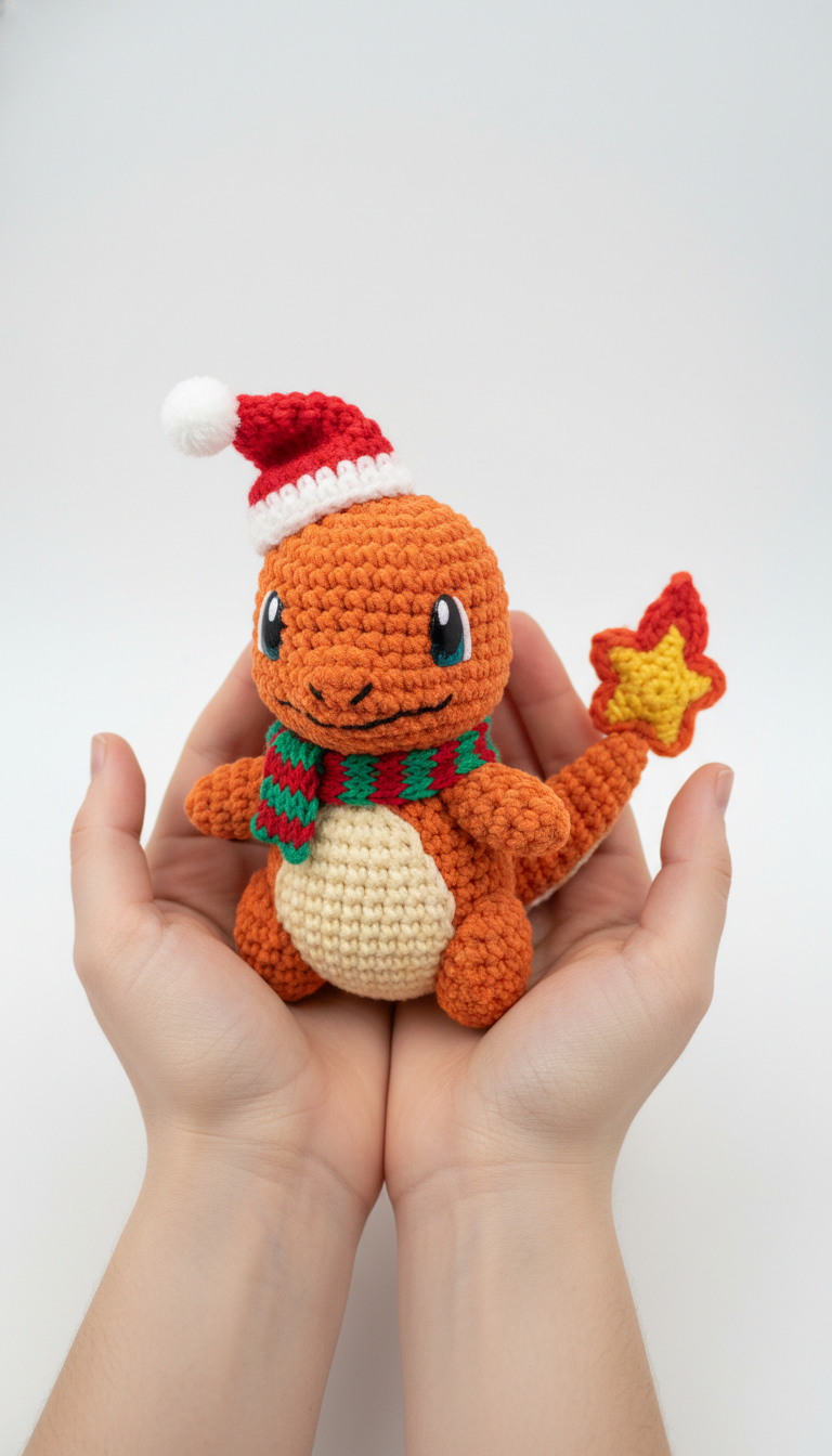 Get ready to catch ’em all this holiday season with your very own festive Charmander! This charming amigurumi pattern features the beloved Fire-type Pokémon adorned in a cute Santa hat and a cozy striped scarf, complete with his iconic flame tail shaped like a festive star. It’s the perfect project for Pokémon fans and crochet enthusiasts alike, adding a spark of joy to your festive décor or making a unique handmade gift.