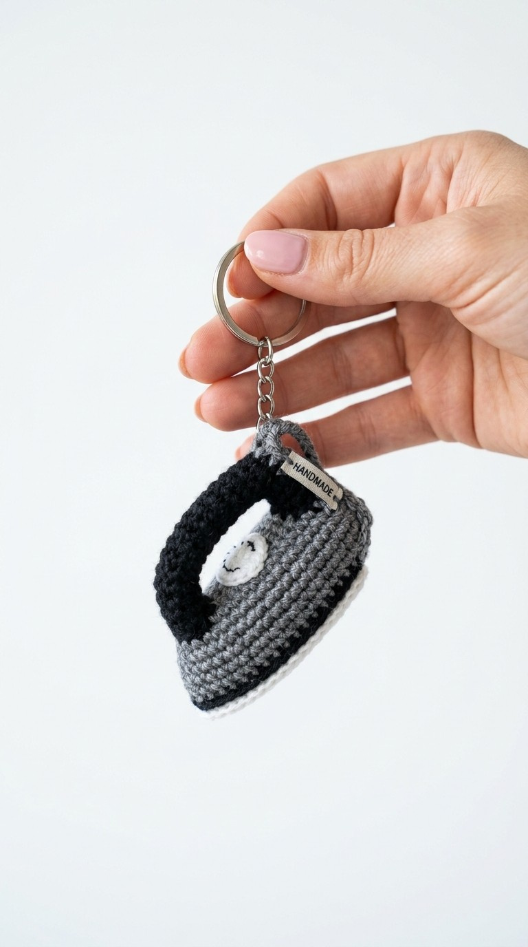 Add a unique and handmade touch to your keys with this adorable crochet iron keychain! This quick and fun amigurumi project is perfect for using up scrap yarn and makes a delightful gift for crafters, homemakers, or anyone who appreciates a touch of whimsy. Get ready to crochet your very own miniature iron!