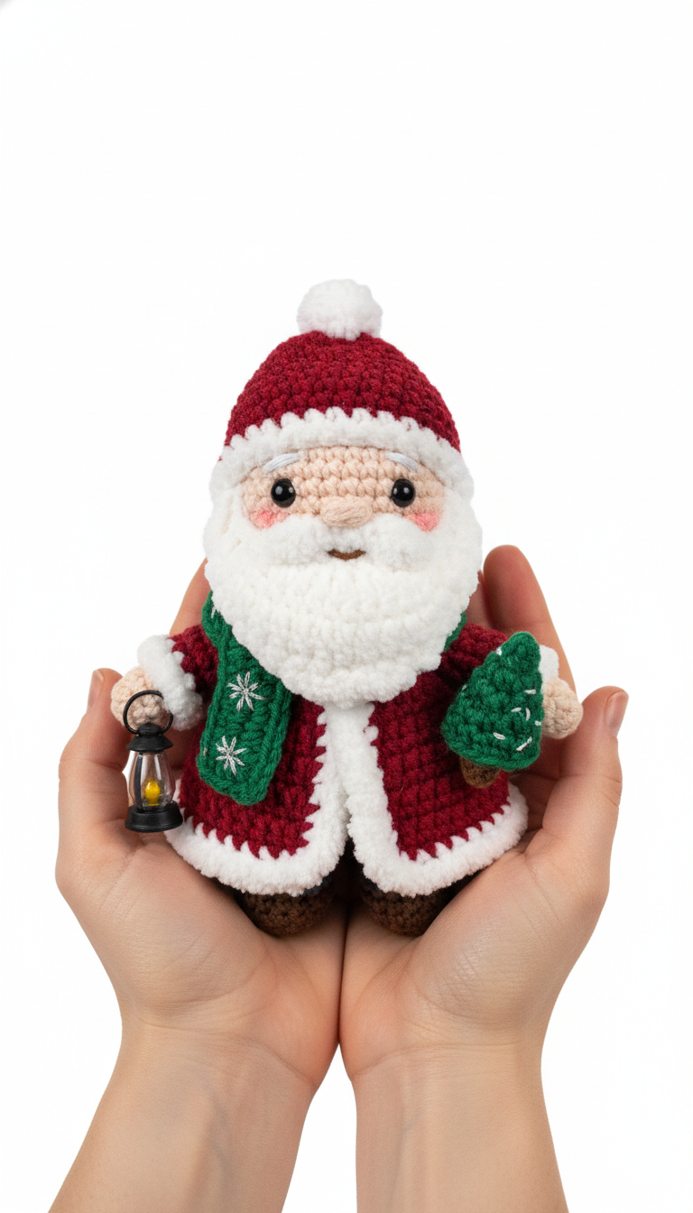 Get into the holiday spirit with this adorable Crochet Santa Amigurumi pattern! Perfect for gifting or decorating, this charming Santa holds a tiny lantern and a Christmas tree, ready to bring festive cheer. This detailed guide makes it easy for crocheters of all levels to create their very own cuddly Father Christmas.