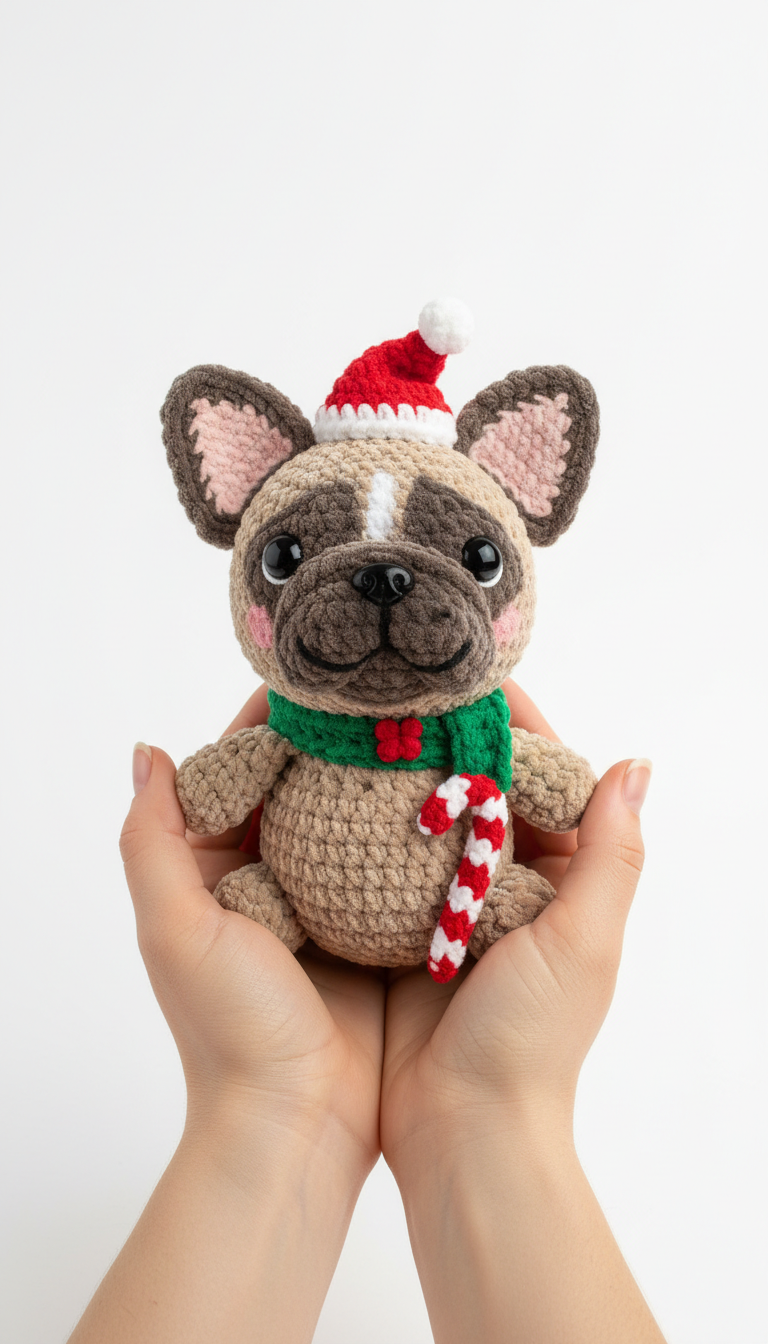 Get ready to spread some holiday cheer with this adorable Christmas French Bulldog Amigurumi! This pattern guides you through creating a charming, festive Frenchie complete with a Santa hat, cozy scarf, and tiny candy cane. Perfect for holiday decor or a heartwarming gift, this lovable pup will bring a smile to anyone’s face.