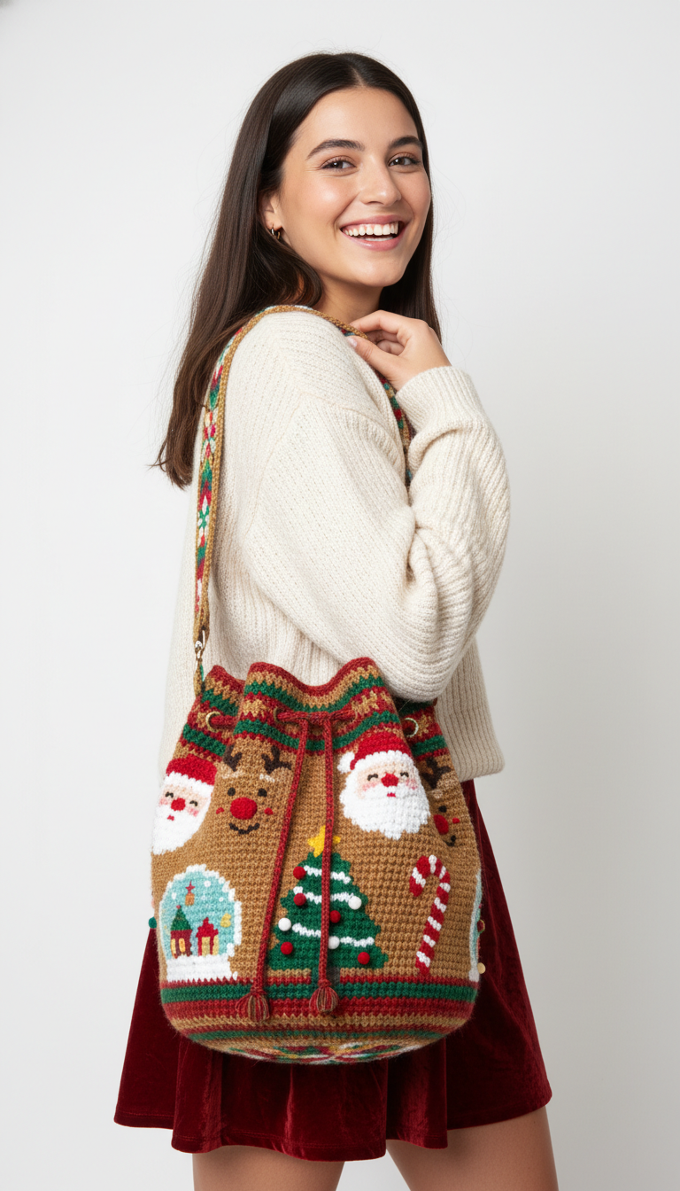 This unique crochet bag allows you to personalize your holiday style or create a truly special handmade gift. The intricate tapestry designs make it a standout accessory, sparking conversations and smiles wherever you go. Beyond its festive appeal, it’s a practical and durable bag, perfect for holiday shopping trips or adding a whimsical touch to your everyday outfits throughout the season.