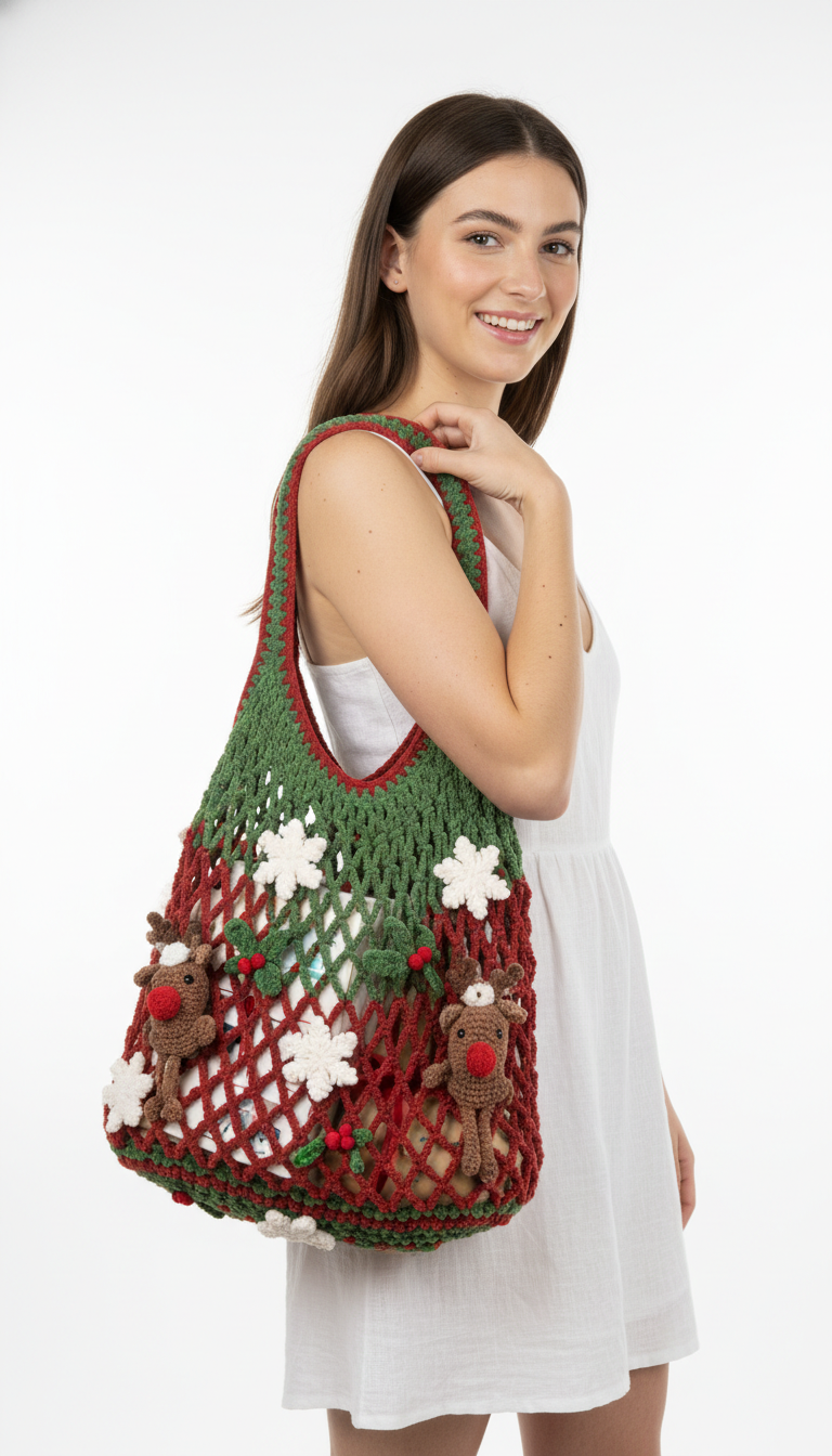 Get ready for the festive season with our delightful Christmas Crochet Market Bag pattern! This charming tote features a sturdy mesh design in classic holiday colors, adorned with adorable amigurumi reindeer, delicate snowflakes, and traditional holly. It’s the perfect accessory for holiday shopping, carrying gifts, or simply adding a touch of cheer to your everyday style. Make one for yourself or as a thoughtful handmade gift!