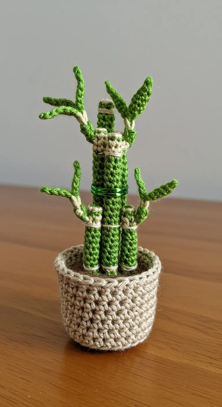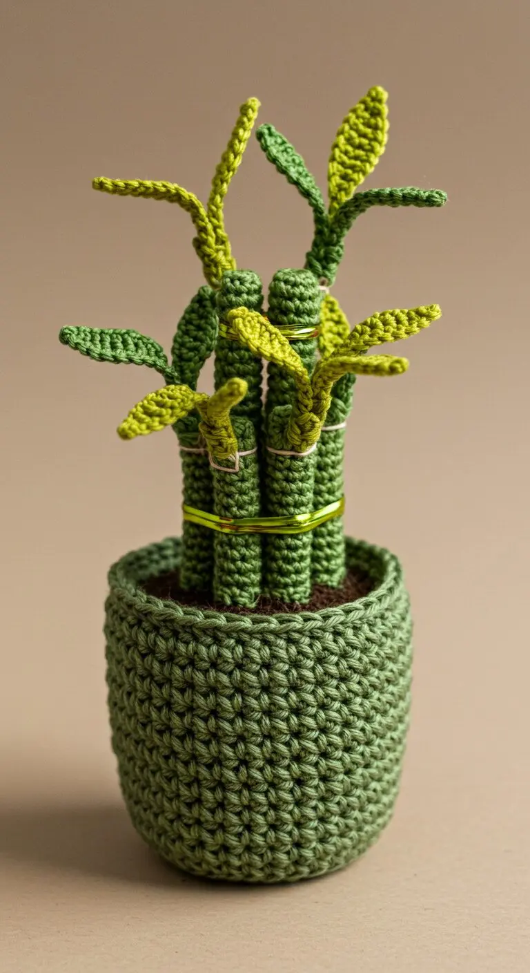 Unlike real plants, these lucky bamboo stems crocheted in a small Zen-style crochet pot require no maintenance โ only appreciation. Ideal for gifting, spiritual dรฉcor, or creating a peaceful corner at home, these yarn creations embody the simplicity and serenity of Zen living in a charming, handmade form.
