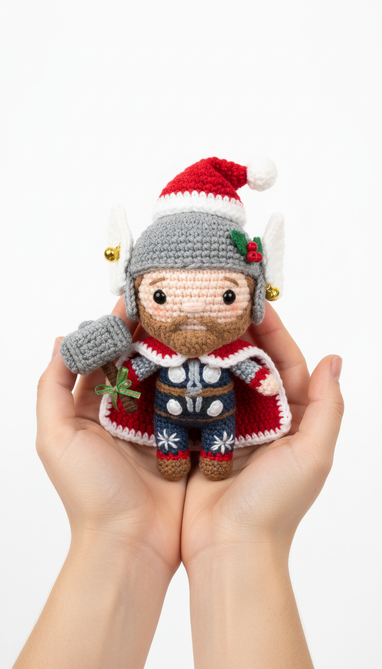 Unleash the festive power of Asgard with our unique Christmas Thor Amigurumi pattern! This adorable crochet superhero, complete with a Santa hat and his trusty Mjolnir wrapped in a bow, is the perfect project for Marvel fans and crafters alike. Create a mighty guardian of holiday cheer that’s sure to bring joy to any collection or make an unforgettable handmade gift.