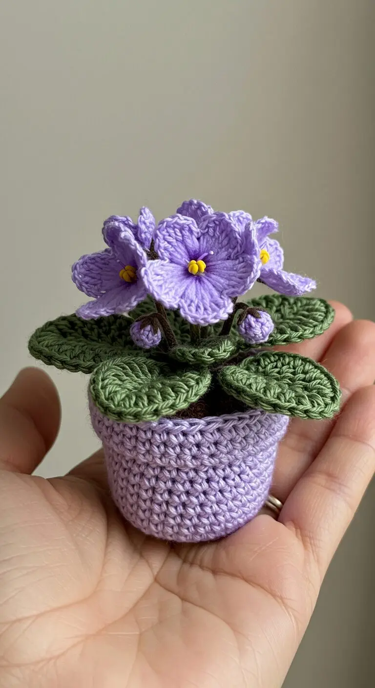 Mini Crochet African Violet with Dark Leaves