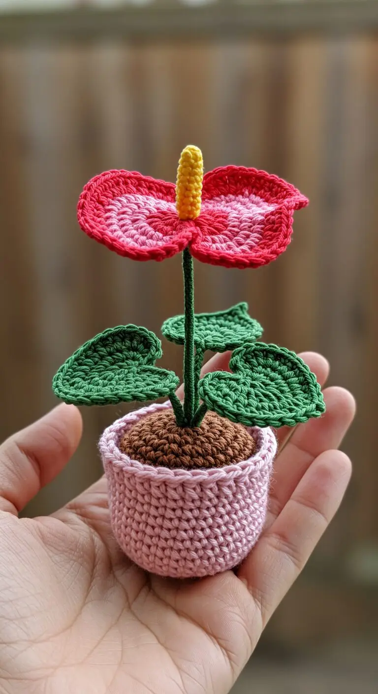 Double Crochet Anthurium Flowers in Beige Pot