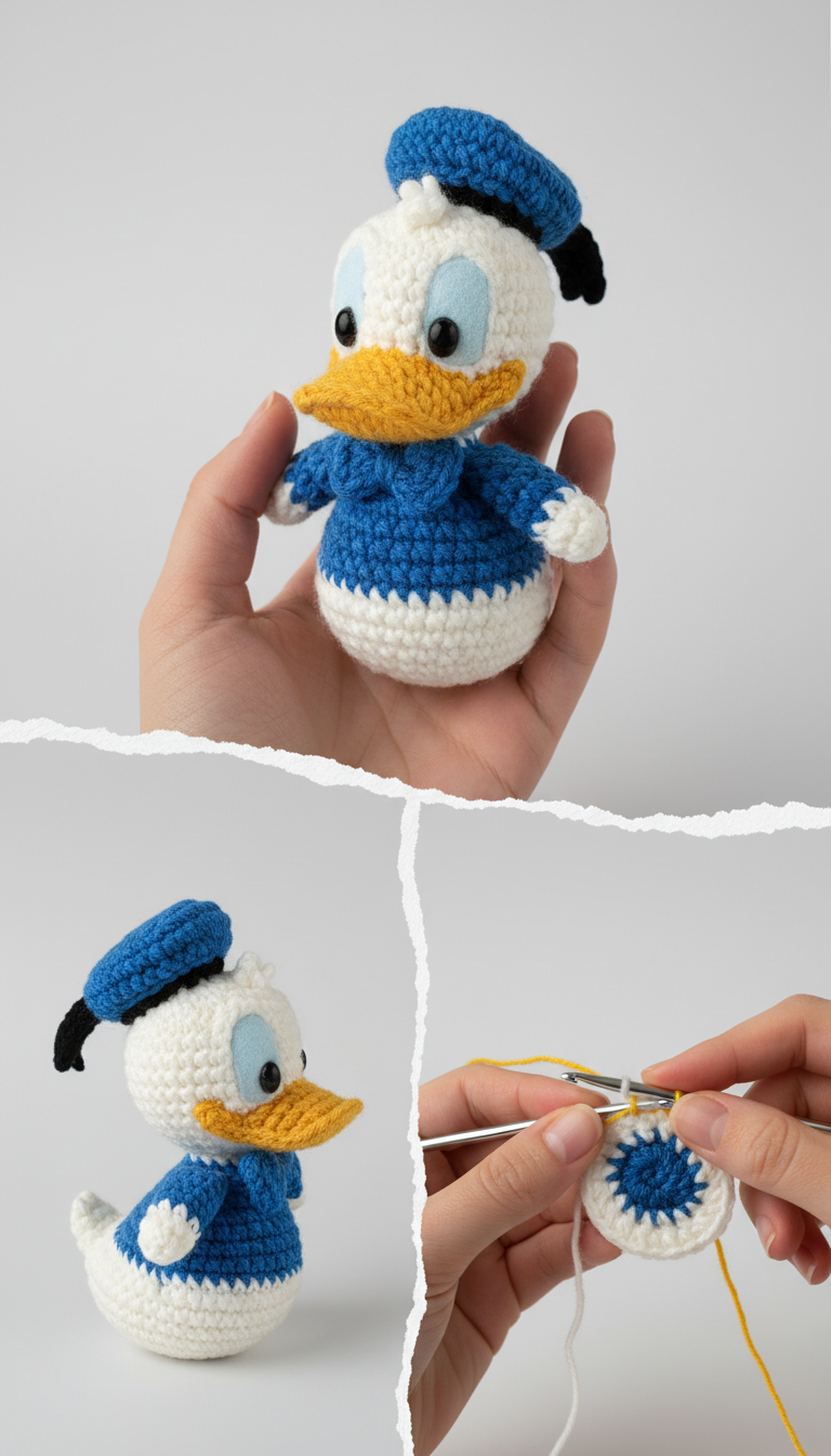 Dive into the whimsical world of Disney with this adorable Donald Duck Amigurumi pattern! Perfect for fans of all ages, this free crochet guide will help you create your very own grumpy-but-lovable duck. With detailed instructions and classic colors, you’ll craft a charming collectible or a heartfelt gift. Let’s get started on bringing this iconic character to life!