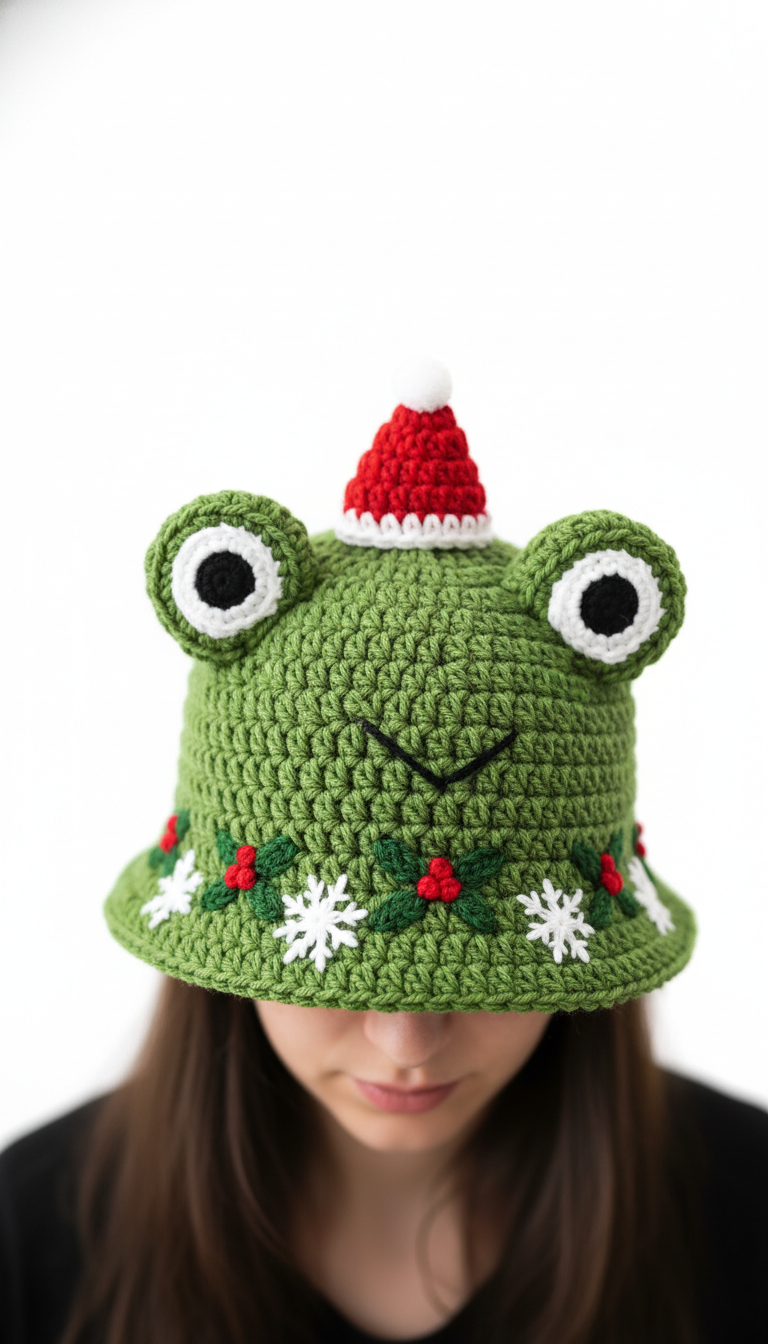 Unleash your creativity and craft a hat that’s as unique as you are. This festive frog bucket hat is more than just an accessory; it’s a conversation starter, a mood lifter, and a testament to your crochet skills. Imagine the joy of wearing or gifting this adorable, custom-made item that truly captures the magic of the holidays.