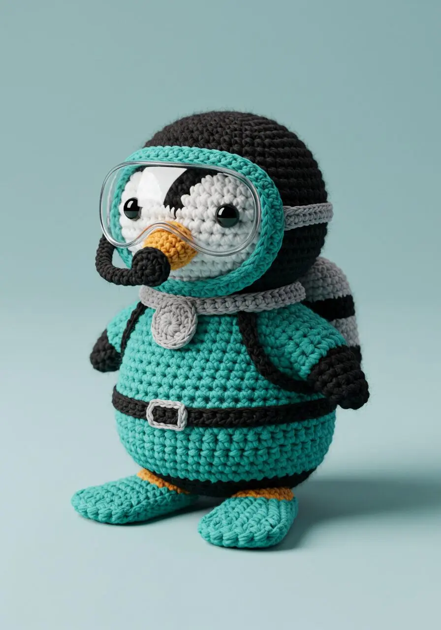 Make your own aquatic explorer with this unique scuba diver penguin amigurumi perfect for sea lovers and crochet fans.