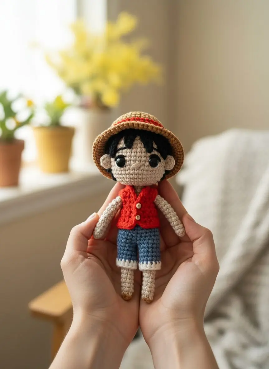 Ahoy, crochet adventurers! ย Ready to set sail on a crafting journey? Bring the Straw Hat Captain to life with our detailed Luffy Amigurumi Crochet Pattern! This is a DIGITAL PDF PATTERN, not a finished toy, guiding you step-by-step to create your very own beloved One Piece hero. Perfect for fans and crafters alike!