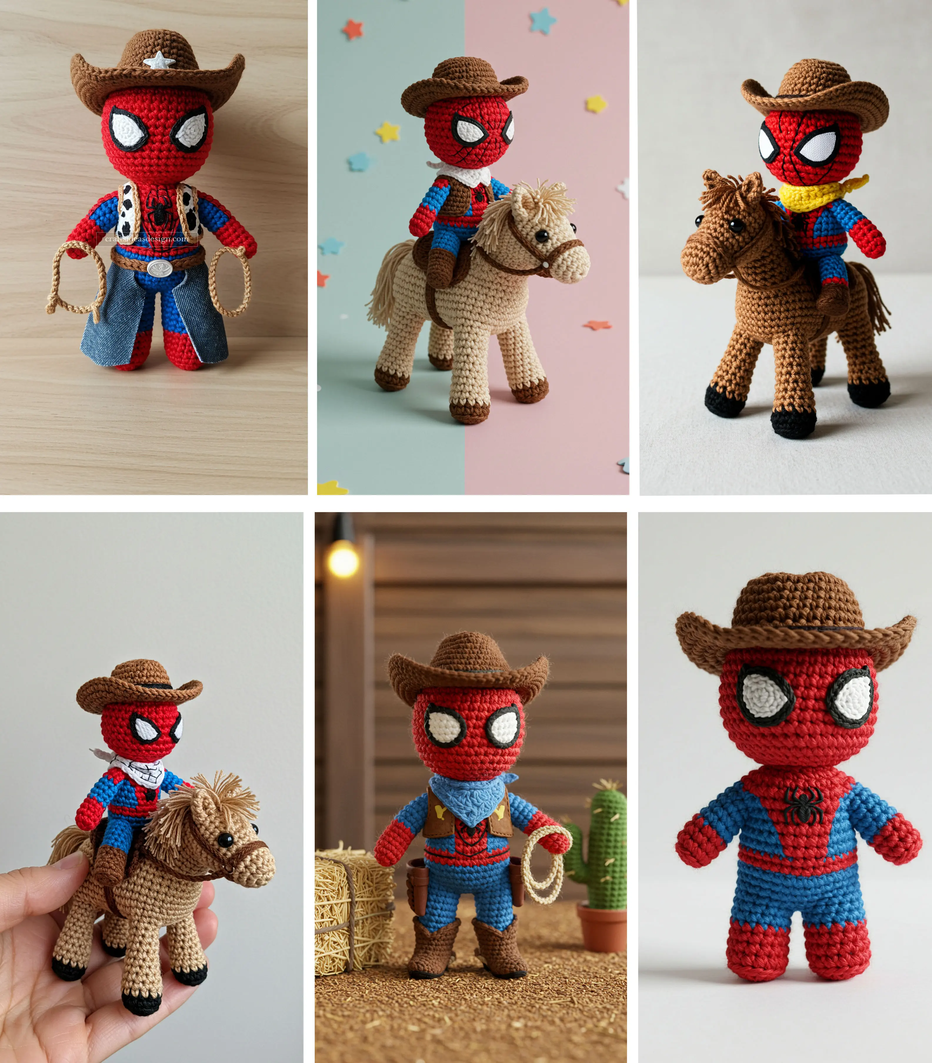 - Mounted Hero: Crochet a horse to complete the wild west theme. Spider-Man riding a horse adds a whole new level of creativity.