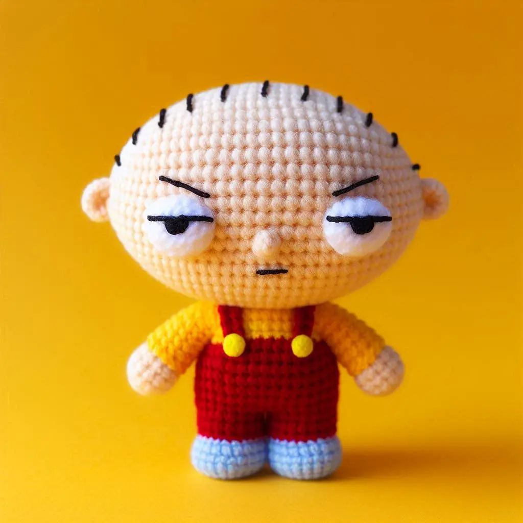 If you’re a fan of Family Guy and love crocheting, this Stewie Griffin Amigurumi is the perfect project for you! With his iconic red overalls, yellow shirt, and mischievous expression, this handmade creation captures the essence of Stewie’s character. It’s a delightful addition to your collection or an excellent gift for fellow fans of the show.