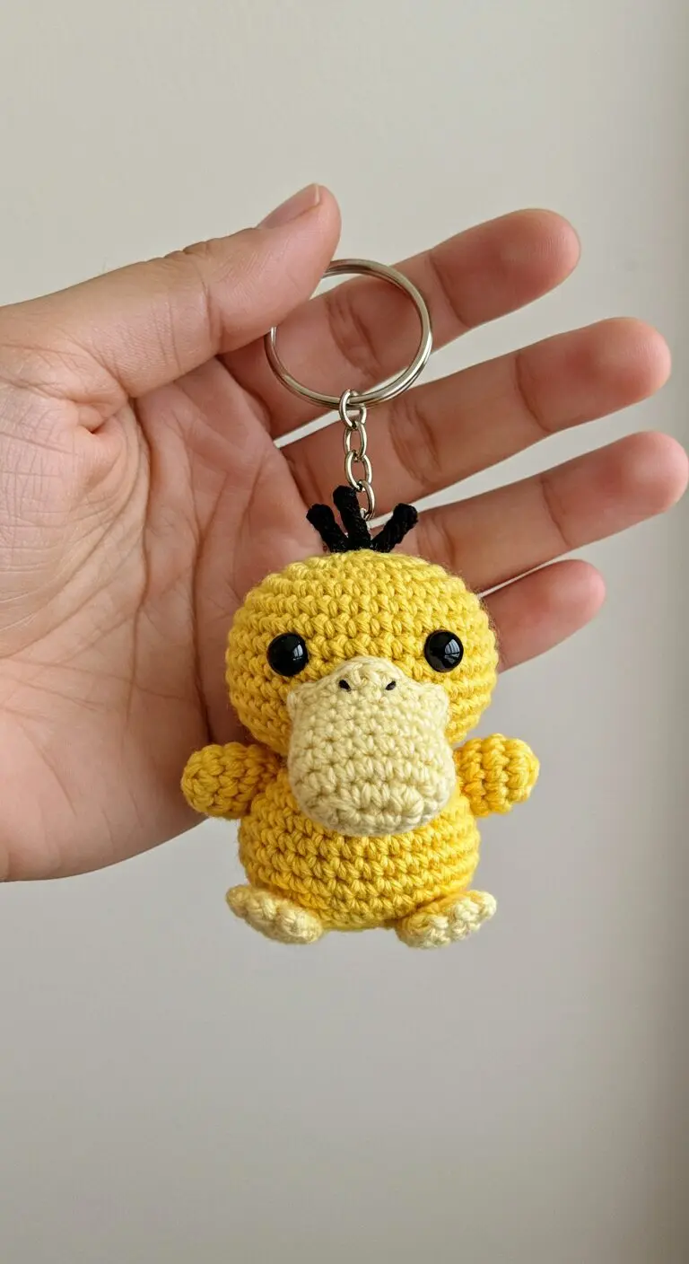 Are you a fan of the sometimes confused, often adorable, and always iconic Pokรฉmon, Psyduck? Now you can carry your very own wobbly friend everywhere with this easy-to-follow Crochet Psyduck Amigurumi Keychain Pattern!
